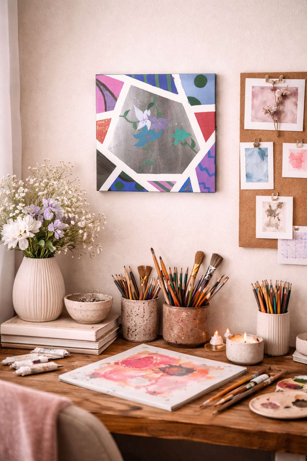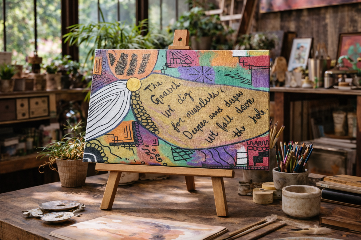 I create from the in-between spaces—the moments most people rush past. The pause after a memory surfaces. The breath before a confession. The quiet recognition that something inside me has shifted, even if I can’t name how yet. My poetry, paintings, photographs, and songs all come from this same internal well. They’re not separate practices; they’re different dialects of the same voice. When words fail, color steps in. When images feel too heavy, sound carries the weight. Each medium meets me where I am at thetime they call to me.