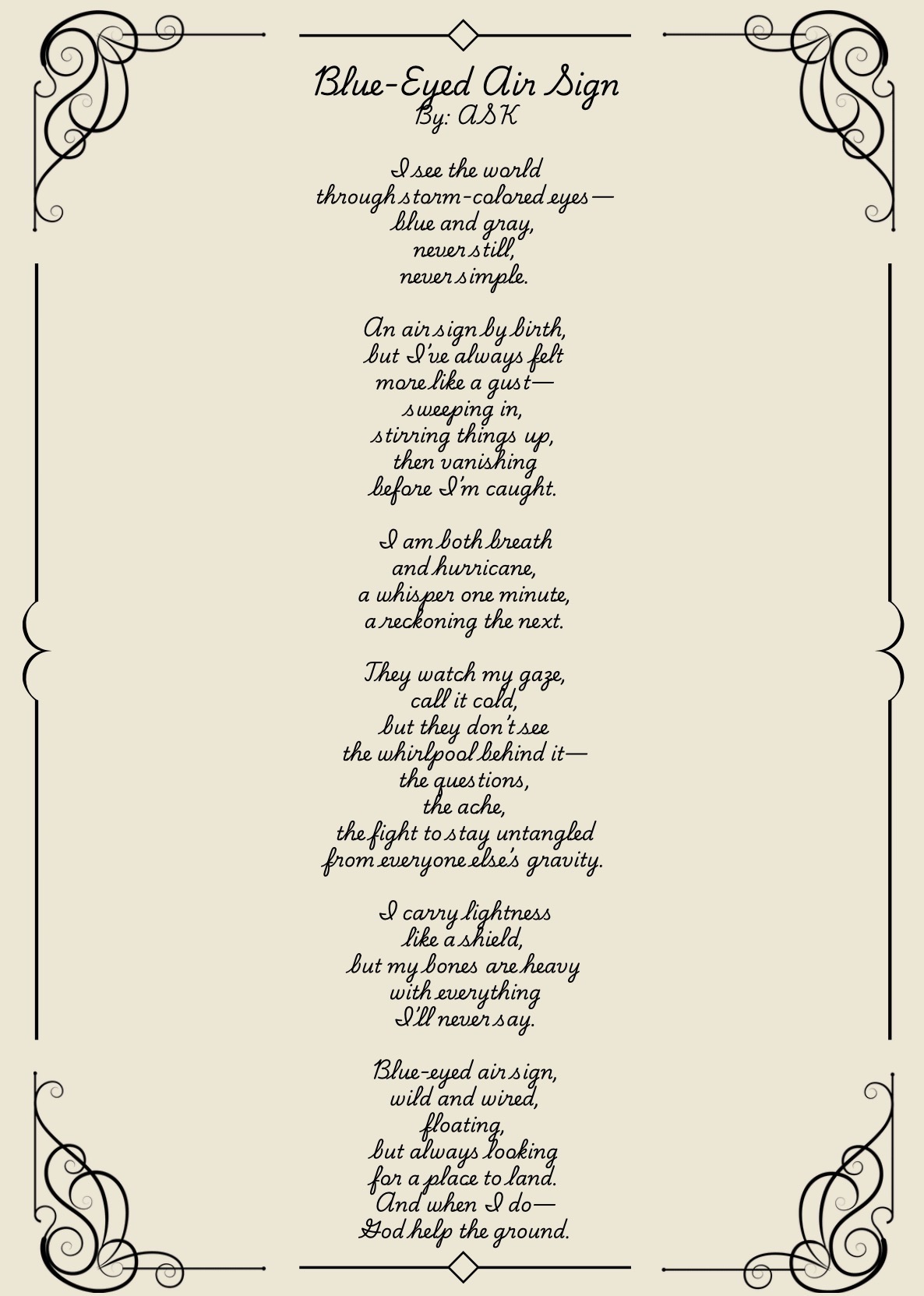 I write from the in-between: where grief softens into ritual, where love and loss share the same breath, where survival becomes language. Each poem is a record of presence—a way of naming what was felt when silence was the only other option.